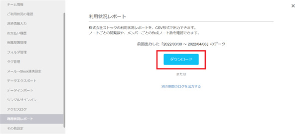③「ダウンロード」ボタンより利用状況レポートをダウンロードできます。