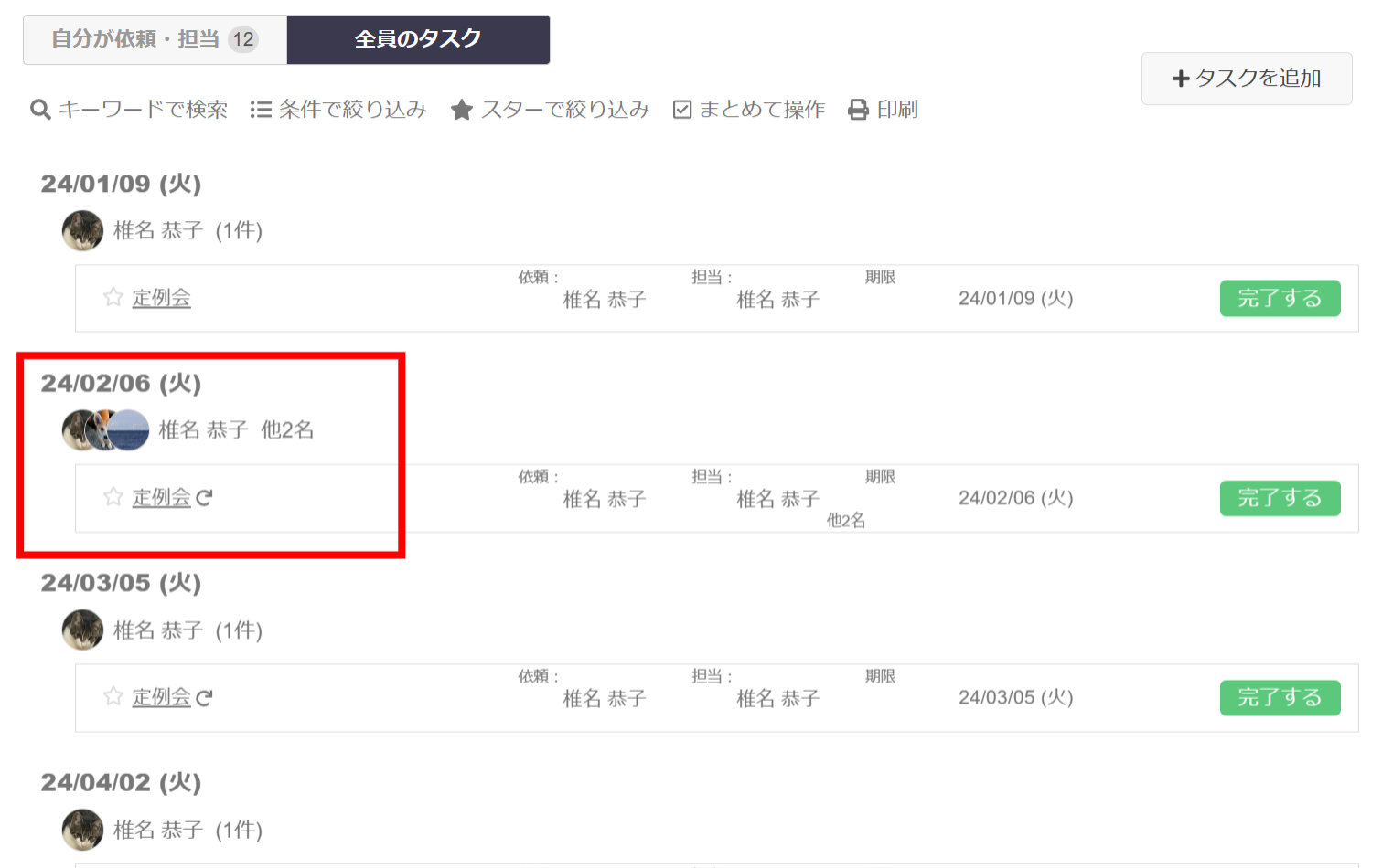 ユーザーの皆様からのご要望を受け、タスクの担当者が複数人いる場合の表示が、よりわかりやすくなりました!