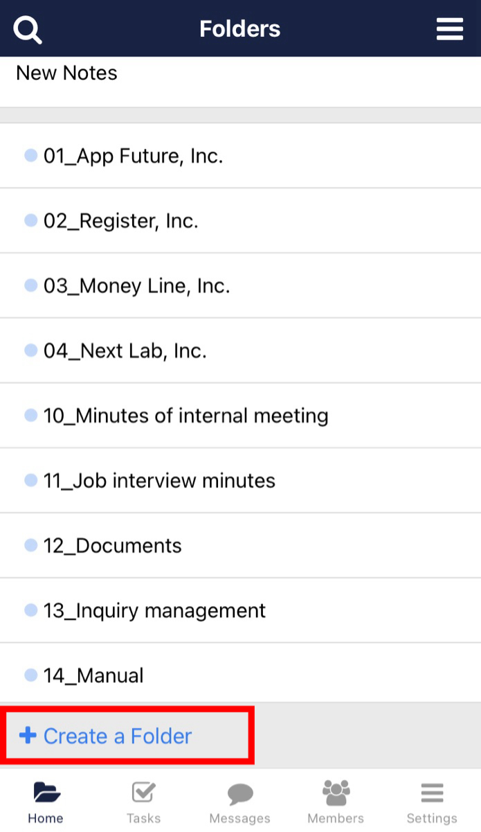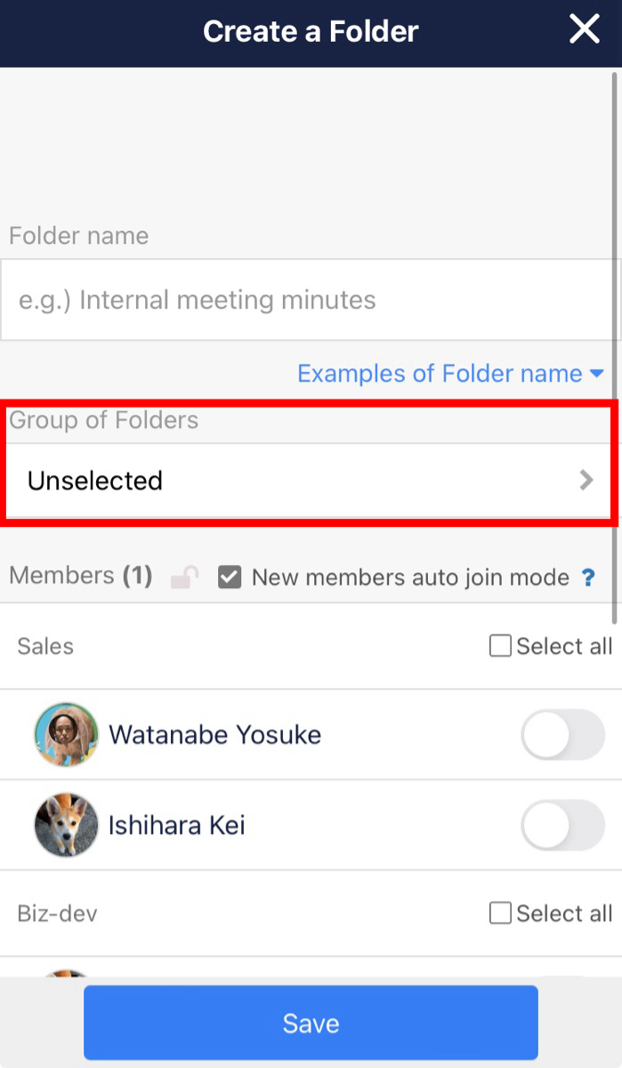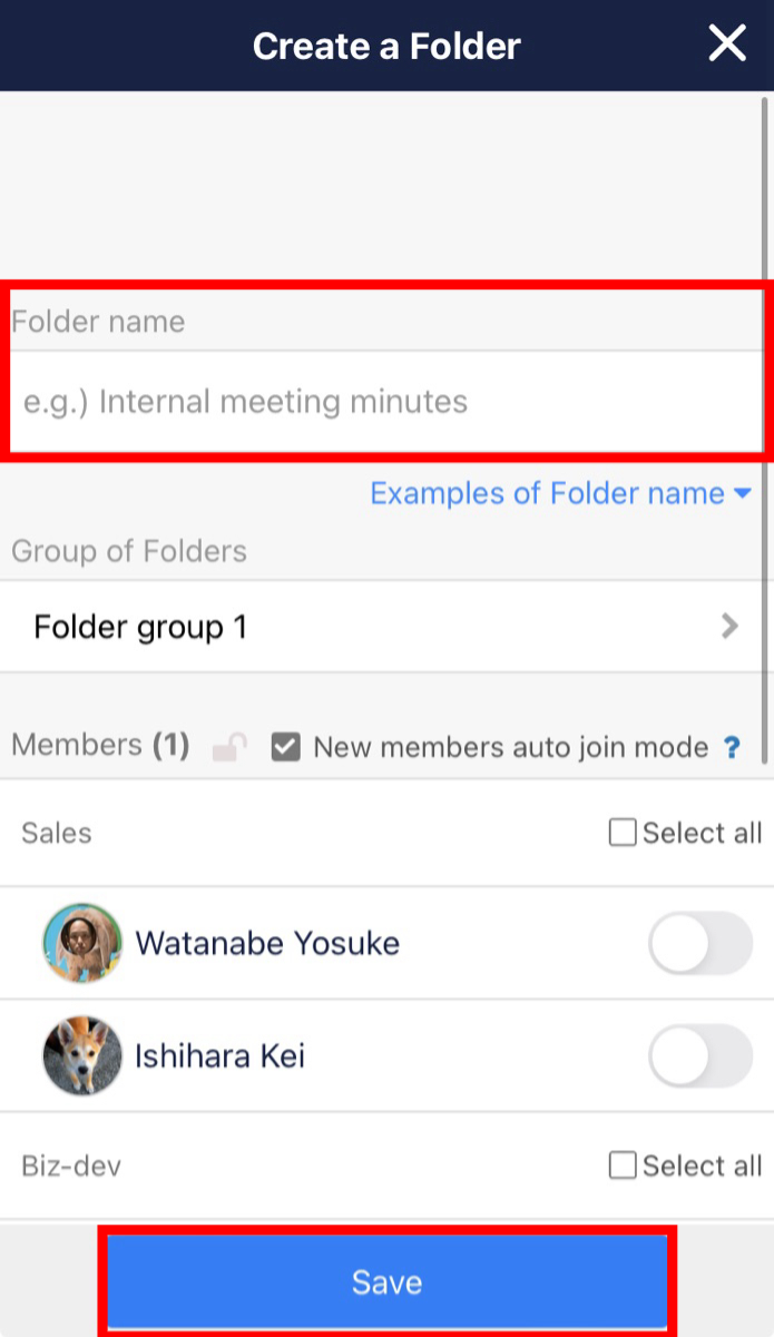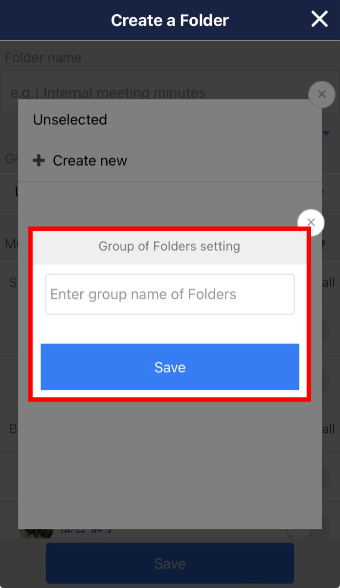 ⑤Enter a “Folder Name” and tap the “Save” button.