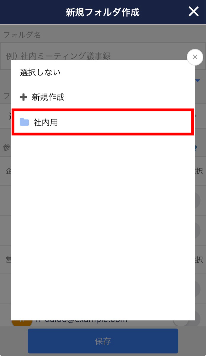 ④「フォルダ名」を入力し、「保存」ボタンをタップします。